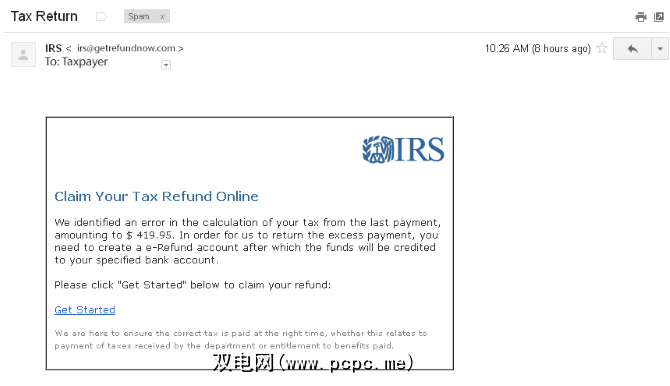 他们可能还会说,他们只是在寻找信息以确认您的税收信息或填写纳税申报单。电子邮件也是如此:他们可能只要求您提供PIN或简单的信息以确认您的身份。