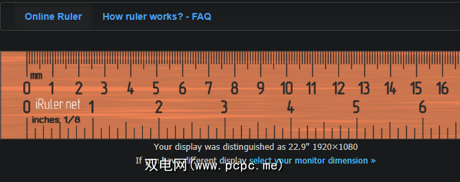 该站点会自动检测显示器的尺寸和分辨率,以便以正确的尺寸显示标尺。如果操作不正确,请单击选择显示器尺寸文本以解决此问题。