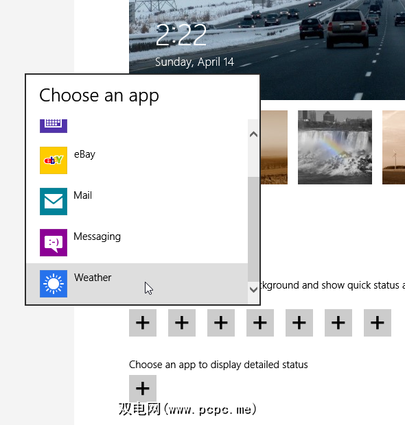 您还可以设置天气详细信息以在通过将天气添加到锁定屏幕应用程序来锁定屏幕。最快的方法是按下WinKey并键入“ lock "。确保您在“设置"而非“应用"中搜索,然后选择“ 锁定屏幕"。要在锁定屏幕上显示天气信息,请单击“ 选择一个应用以显示详细状态"下的加号,然后选择“ 天气"。