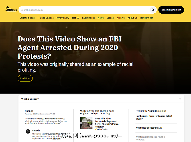 Snopes的主要作用是揭穿或确认各种虚假新闻和城市传说,因此受到了可以理解的审查。毕竟,这是一个网站,开始通过互联网谣言对名人暴行等进行生活检查,现在已成为数以百万计的人经常引用的事实检查来源。