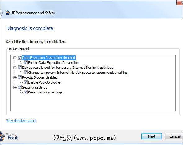 Fix It服务无法检查其他浏览器的问题,但可以IE浏览器。从理论上讲,它可以将Internet Explorer的设置设置为推荐的设置。