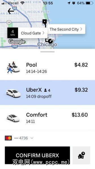 芝加哥是美国最大,最繁忙的城市之一,当然,您可以在这里找到更多的乘车选择。在一天的同一时间,乘坐UberX从Cloud Gate到The Second City喜剧俱乐部的费用为 9.32 ,而与Lyft Economy进行相同的定价为 $ 8.94 strong>。