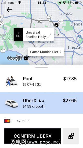 Lyft和Uber的价格这里非常相似。但是,如果这次旅行要花更多时间,您可能最终需要向Uber多付一点钱,因为它的每分钟成本比Lyft的价格高0.05美元。