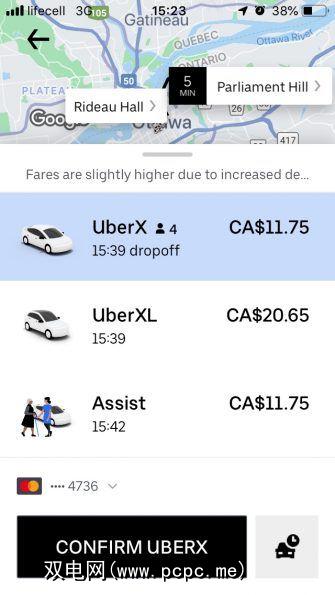 最后但并非最不重要的是,加拿大的首都也可以在两种拼车服务中进行选择。如果您想到达所有主要景点,这里有Lyft与Uber的价格比较示例。在UberX,国会山到Rideau Hall的费用为 11.75加元,在Lyft经济版中为 13.09加元。