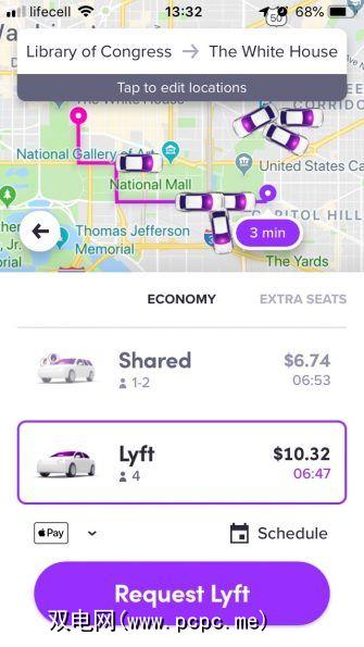 在华盛顿特区,最值得一看的地方都在步行距离之内。但是,如果您想从国会图书馆到白宫,那么您想使用哪个应用程序?该路线的UberX费用为 10.11美元,而Lyft Economy估算的费用为 10.32美元。