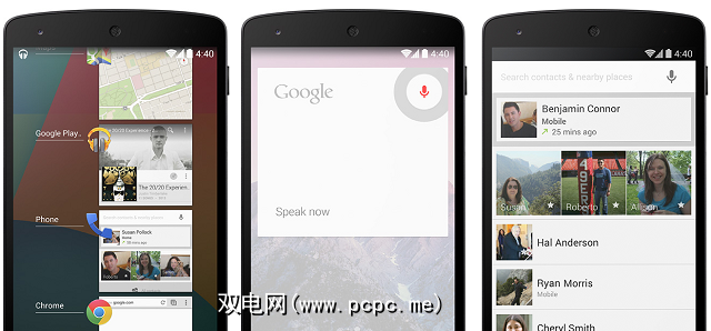 导航栏和状态栏现在是透明的,允许您墙纸和应用程序占据整个屏幕,并且书籍和电影现在会自动以全屏显示。根据Google的说法,RAM的使用已得到了极大的改善,它允许更快地执行多任务处理,并允许4.4在低至512MB RAM的低端设备上运行。并且电话应用程序已更新,以包含更好的呼叫者ID和优先联系人。