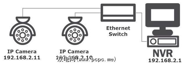 如果您有两个摄像头,那么一个摄像头的IP地址可能像192.168.2.10,而两个摄像头可能是192.168.2.11 。通常,安全系统中也有一台计算机,称为网络录像机(NVR)。它将具有自己的IP地址。假设它是192.168.2.1。