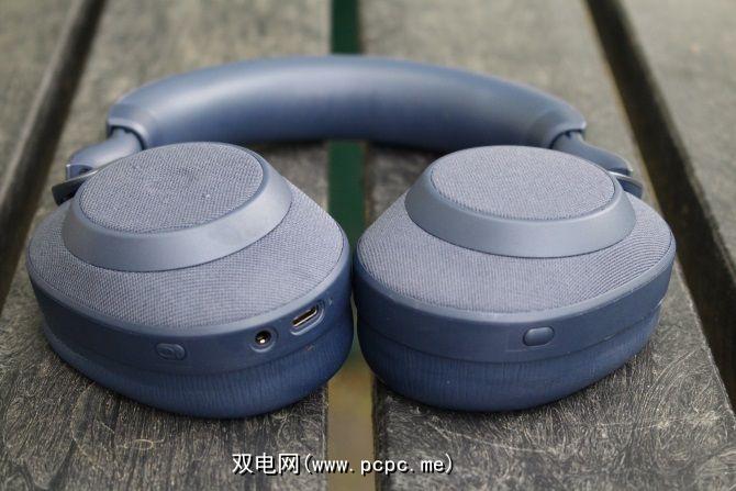 在耳垫的下方可以找到USB-C充电端口端口,3.5毫米耳机插孔和语音助手按钮。左耳垫是稀疏的,下方只有一个按钮可以切换噪声消除模式。