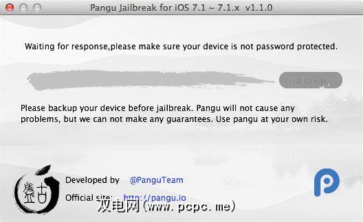 3。下载并启动适用于Mac OS X或Windows的Pangu越狱应用程序,花一秒钟的时间来检测您的设备。
