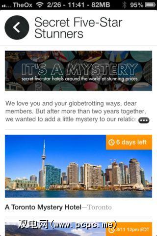 该应用程序中我最喜欢的部分是“今晚"页面。在这里,您会发现一天中特定时间发布的主要地点的最后时限交易非常好。此部分中张贴了纽约,拉斯维加斯,芝加哥,旧金山等地方。在纽约市中心的一家酒店里以$ 106的价格成交,对于这个地区来说是很便宜的。