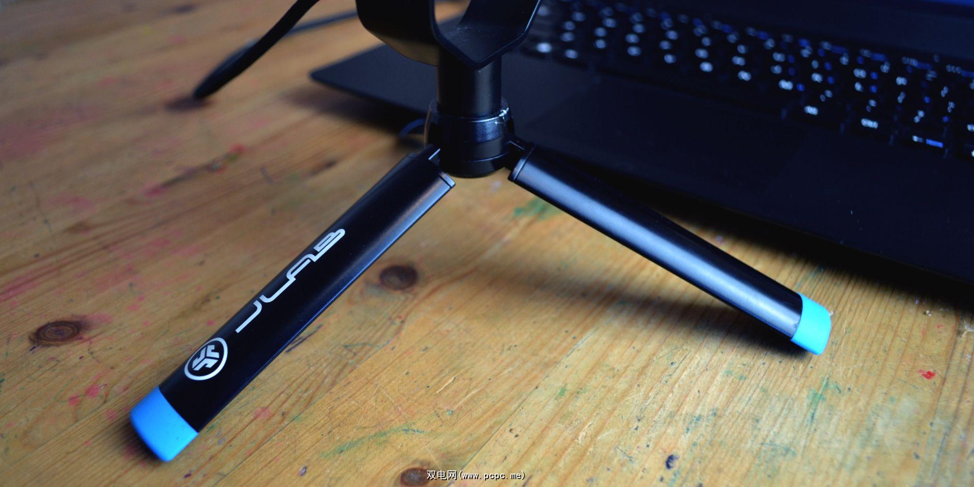 麦克风尺寸约为 281 x 193 x 193 毫米(11.1 x 7.6 x 7.6 英寸),不过您可以使用随附的三脚架来调整麦克风的高度。如果您打算使用 JLab Talk Pro 进行个人或团体录音,那么增加高度的选项非常方便。三脚架固定在话筒单元的侧面,而其橡胶支脚在某种程度上可以减少录制时任何意外的颠簸或撞击声。此外,如果您将 Talk Pro 用作更持久的录音设置的一部分,您可以使用标准的 5/8" 螺丝将麦克风拧入专用支架。