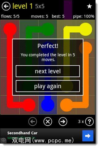 Flow Free适用于Android(2.2+)和iOS(3.1+)。您可以转到Google Play商店,或者如果您有iPhone,iPad或iPod Touch,请前往iTunes App Store。我将在这里评论Android游戏应用程序。 Flow Free实际上是免费的,但受广告支持。 Android版本的安装大小约为4.5 MB。
