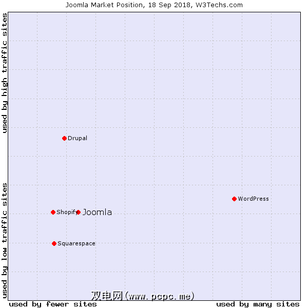 此外,Joomla陷入了一个陌生的空间,越来越少的人流使用它网站。相比之下,Drupal所使用的站点更少,但流量更多。然后WordPress被大量网站访问,这些网站的网站访问量各不相同。尽管它是使用率排名第二的CMS,但Joomla在网站使用和流量方面均落后于WordPress和Drupal。因此,它不太受欢迎。