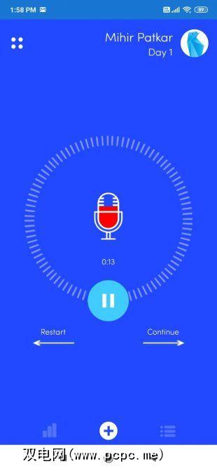 点击“播放"按钮开始录音。您可以暂停记录并稍后再恢复,从而可以在不同时间记录一整天的日记帐分录。当然,您可以自由地停止录制并保存它,然后开始一个新的音频条目。您还可以通过点按“重新启动"以刷新音频来擦除整个条目。