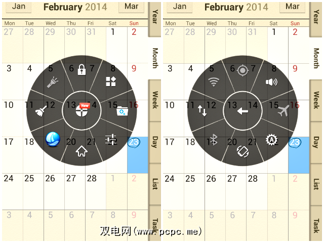最后,我们来到列表中最可定制的应用程序。使用时,“浮动触摸器"在屏幕中间显示为一个小的圆形仪表板或面板爆炸。在其他时候,它作为一个小的圆形图标位于屏幕边缘,随时可以通过点击显示主面板。向右和向左滑动圆形菜单以显示另外两个面板。如果您正在运行免费版本,则只有中央版本可供您使用。