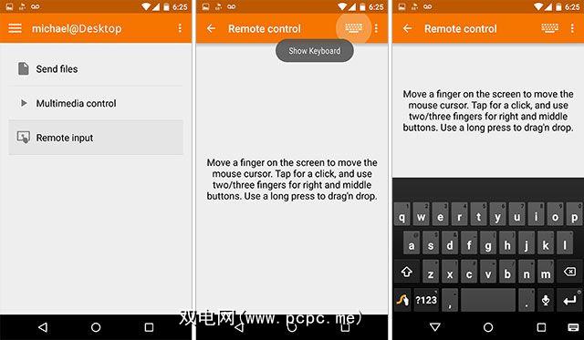 远程键盘输入允许您使用任何Android键盘,包括Swype等键盘利用手势输入作为计算机的键盘输入。此功能需要在计算机上安装版本0.7.3 + ,但对于与Ubuntu相关的发行版,现在安装0.7.3+有点奇怪,所以如果您有兴趣使用此功能,则向下滚动到安装部分。我在这里解决了这个问题。