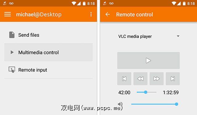 远程控制功能使您可以从自己的计算机远程控制音乐播放器和视频播放器。 Android设备。此功能支持许多音频和视频播放器,包括Amarok,VLC等。如果您想检查您选择的播放器是否受支持,那么您要做的就是开始在该播放器中播放某些内容,然后在Android应用上打开Multimedia Control(如果支持),那么KDE Connect将自动检测到该播放器并允许您从应用程序控制播放器。