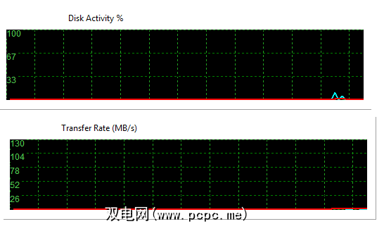 如果您急于关注硬盘的性能,则有一个选项卡显示了可以读取的最大理论速度的关键细节。并写入数据,以及当前有多少磁盘活动正在发生。