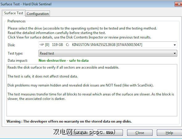 其他测试包括表面测试,像扩展的自检一样,它着眼于磁盘表面的一致性和完整性。可以将该测试设置为不修复,使其成为非破坏性测试,或者进行修复。
