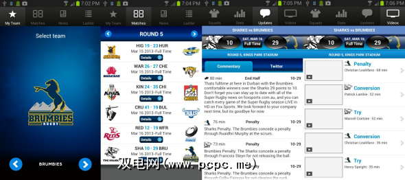 此应用程序是由FOX电视带给您的。这是我想要的功能的高雅实用的界面。尽管立即更新有些隐蔽。您必须进入比赛并选择一个,然后才能执行操作。完成后,您会发现它的布局相当不错,并且通过该应用程序报告了每一次重要的演出。您还可以几乎实时查看这些播放的精彩片段。我也不确定在进入应用程序后正确选择团队的意义是什么。它似乎没有任何影响。我之所以选择Brumbies,是因为我在Super Rugby中观看的第一场比赛是Brumbies,而且他们赢了。