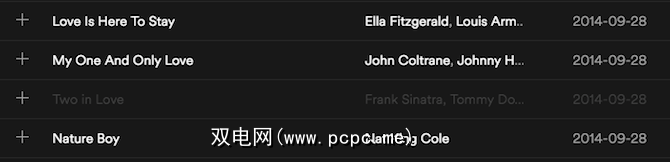 现在回到您的播放列表,您会看到任何从列表中删除的歌曲将会出现(它们将显示为灰色且无法播放)。