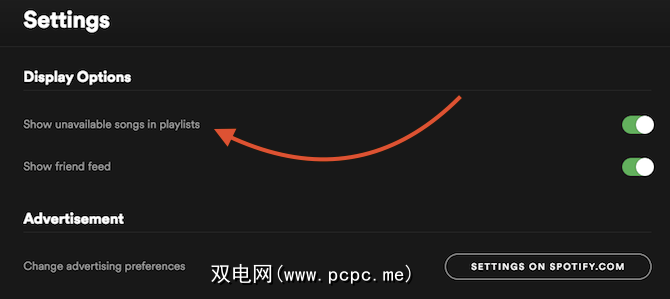 要找出哪些歌曲不再存在于您的播放列表中,请转到设置 >显示选项,并确保已打开在播放列表中显示不可用的歌曲。