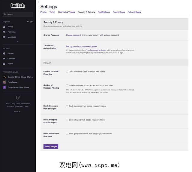 首先,您需要登录并转到设置。然后,转到标有安全和隐私的部分。顶部附近是双重身份验证标签。点击设置两因素身份验证链接,输入您的Twitch密码,然后输入您的电话号码。