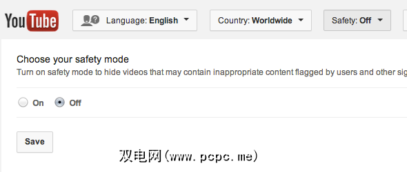 YouTube 提供了类似的安全功能,可以通过向下滚动到屏幕底部来打开和关闭该功能。这样可以防止某些视频在搜索结果中浮出水面。适当和不适当的选择取决于用户的标志,因此虽然不一定从YouTube删除视频,但它们不会出现在孩子搜索小猫和小狗的过程中。