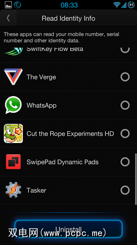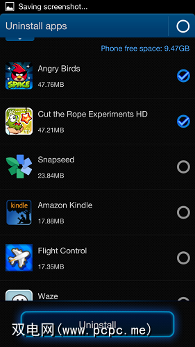 App Manager有多个部分,而卸载程序只是其中一部分。对我来说,这很有趣,因此您可以在上方看到。它使您可以选中多个应用以进行批量删除;但是当您点击“卸载"按钮时,并不能真正将它们批量删除(就像Titanium Backup一样);相反,它会分别触发每个应用程序的Android本机卸载程序,从而使您确认每个应用程序。因此,这样可以节省一些时间,但不会节省很多时间。