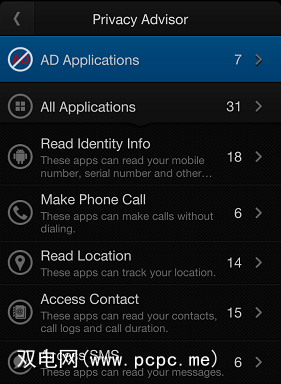 运行扫描时,您的应用程序图标会缓慢向下滚动,看起来像一个装甲的窗口,上面有激光。清晰,有趣和可视化–我确定有些用户会为了娱乐而扫描他们的应用程序。完成后,您将获得一个包含扫描结果的页面,该页面基本上是Android系统权限的列表,其中显示了每个应用程序需要多少个应用程序: