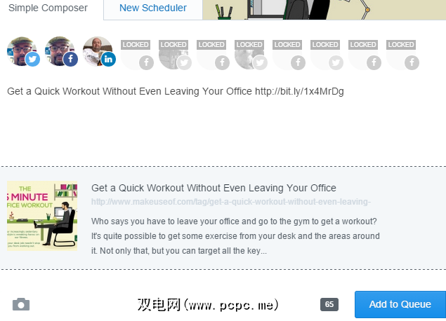 Click “add to queue” and the URL gets added to your Buffer queue, ready to go out on the next pre-configured time. There is also an option to push it out right away. And if you prefer, Buffer offers mobile apps for scheduling social media updates while out on the move (iOS & Android).