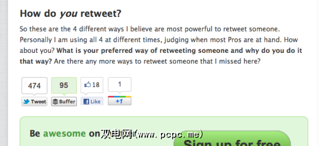 请看本文左侧。看到那些Facebook,Twitter,Google +和Grouvi按钮?这就是每个值得花钱的博客作者在其博客文章中所需要的。因为您不仅可以使人们更轻松地共享您的作品,还可以在其中附加您自己的用户ID。免费获得Twitter ID!找到自由!