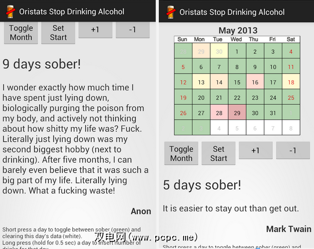 他们的应用程序于2013年12月推出,它具有用于记录日志记录进度的交互式日历,800多个有关戒酒的鼓舞人心的报价,一种跟踪您“清醒的条纹"的方法,以及可以将所有数据导出到自己的电子表格中。