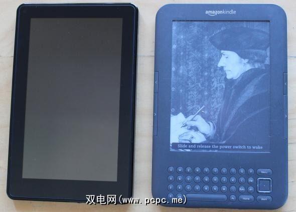 要进行另一个尺寸比较,这是Kindle Fire紧挨着Kindle 3: