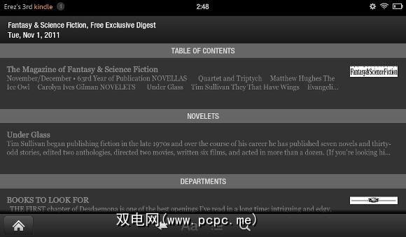 一些杂志以“ Kindle本机"格式提供,看起来更像是电子书,而不是杂志。以幻想与科幻小说为例: