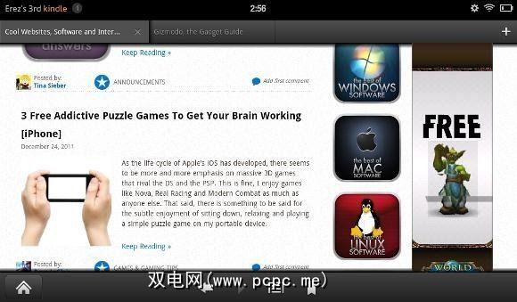 接下来,让我们看看在Kindle Fire上阅读一本杂志: