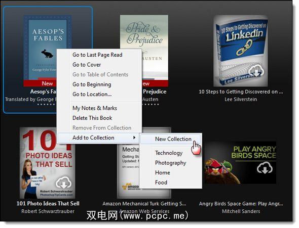 适用于PC的Kindle反映了您在其他任何版本的Kindle上都能找到的大多数功能。初次使用时,您可能必须下载书籍和其他元素(例如字典),但这些操作都非常麻烦。如果您有很多书,最好将它们整理成藏书。正如您在下面的屏幕中看到的那样,组织收藏集很简单,只需右键单击书本缩略图并创建一个新收藏集或将其添加到现有收藏集即可。
