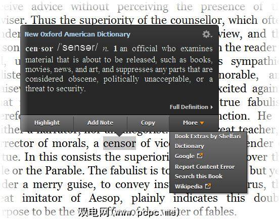 右键单击相关作品也可以调出词典含义,以及其他一些工具,例如链接至Shelfari和该书上的参考信息。它可能包括字符草图,引号,杜威分类,书的阅读水平和其他补充材料等额外内容。您还可以使用Wikipedia链接来快速获取信息页面。