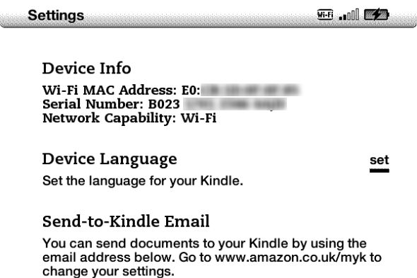序列号也可能成为可以在设备背面和包装盒上找到。您还可以通过访问亚马逊,登录您的帐户并选择您的帐户>管理您的Kindle>管理您的设备>已注册的Kindle设备,来识别Kindle。