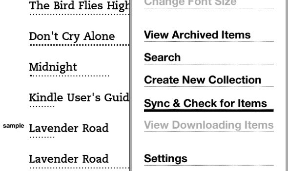 下一步,请检查电池。如果电量不足,则需要先充电,然后再继续。打开菜单并激活3G连接,然后通过将设备与Kindle库同步(在更高型号上为 Menu> Sync&Check for Items )。