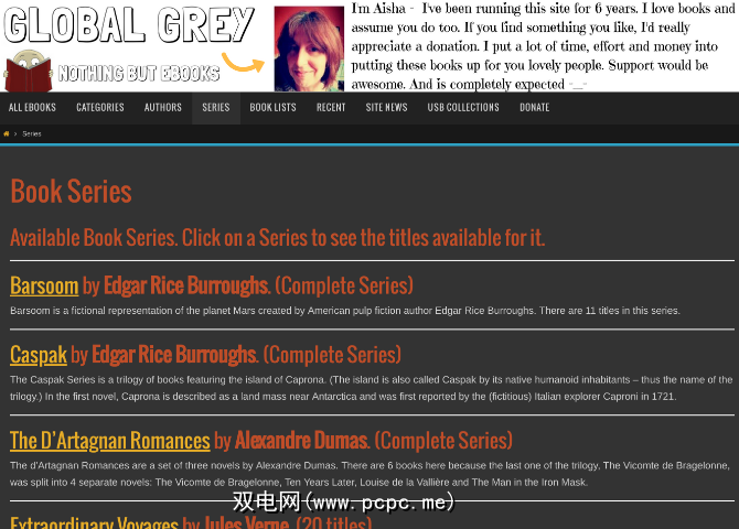 您可能知道经典书籍可以在Project Gutenberg等网站上免费获得。但是艾莎却付出了更多。她收集了一些最好的丛书,这些丛书让您容易下载和阅读。转到Global Gray的“系列"部分,您将无休止地阅读馆藏中的免费电子书。
