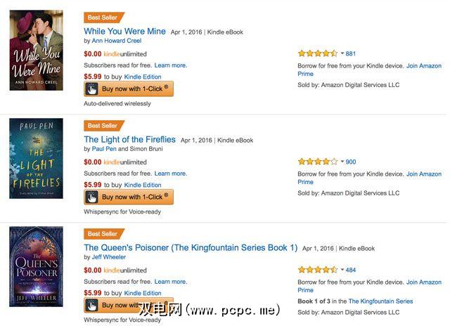 1。 Kindle Unlimited的书籍选择不佳