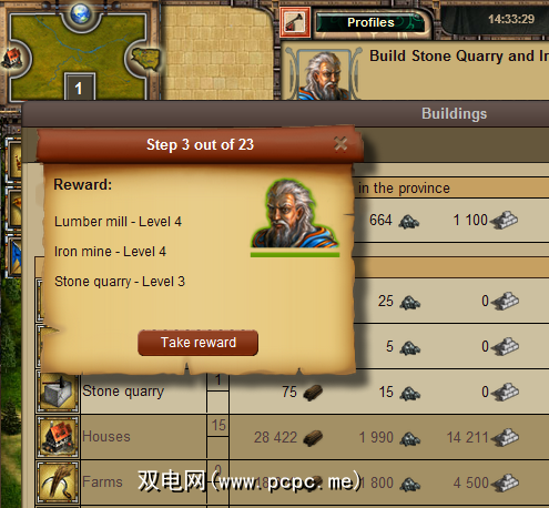 每次您达到某个水平(例如人口限制)或达到某个水平在游戏中,您将获得“奖励"。有时这些是原材料,金钱或只是建筑物的增加,这意味着更高的生产率。