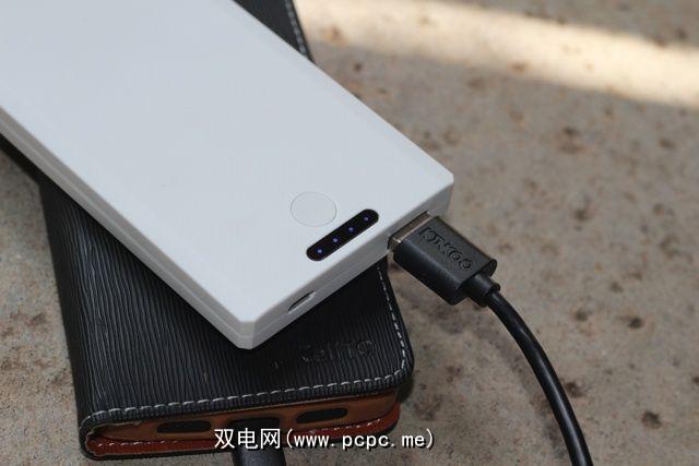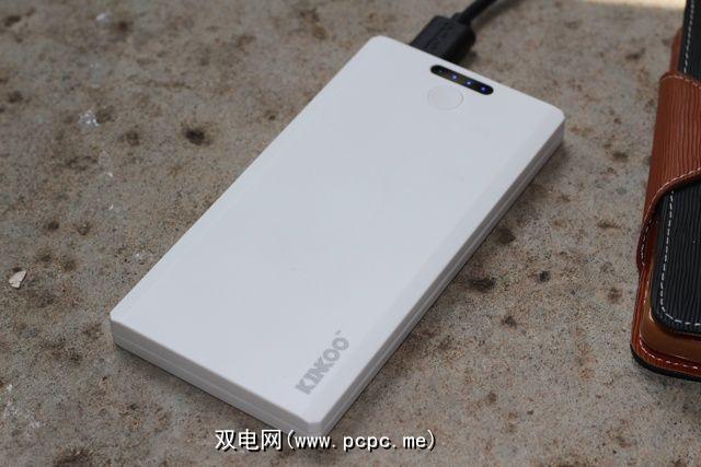 Kinkoo Infinite One便携式充电器具有精美的白色,斜线纹理的塑料外壳,具有倾斜的表面。将外壳描述为“抓地力"确实不利。 Kinkoo充电器可在我所见过的所有设备(包括平板电脑和智能手机)中提供最大的握持力。虽然带纹理的表面可能会吸引灰尘和污垢,但总的来说,其好处大大超过了潜在的负面影响。