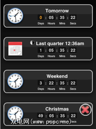 请注意,该小部件背后的公司还提供了移动网络版本和iPhone应用程序。两者在打开时都显示四个倒计时。