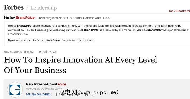 有时您会在帖子中看到“广告"或“广告",但有时会看到“赞助者帖子", ",“精选帖子",“建议帖子",“精选合作伙伴"或其他不太明显的标签。例如,《福布斯》(Forbes)只是将其称为“ BrandVoice":