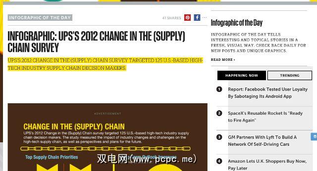 结果证明,这不仅仅是一篇普通的帖子-它是电视节目 Younger 的广告。这可能不会让您感到不安,因为列表与BuzzFeed上的任何其他帖子几乎相同。但是,许多值得共享有价值信息的值得信赖的其他站点也发布了本地广告。以下是 Fast Company 的示例,该公司在2012年的“每日信息图表"列中添加了此广告: