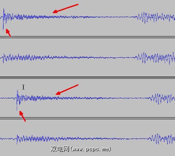第一个测试是使用默认的Audacity导出设置将原始录音导出为MP3文件。然后,并排打开两个文件,我们仔细查看了声音文件。