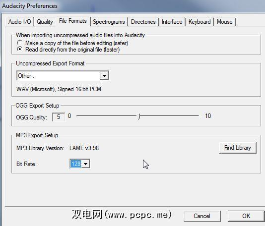 在Audacity中检查MP3导出设置,但不能提供最佳质量。