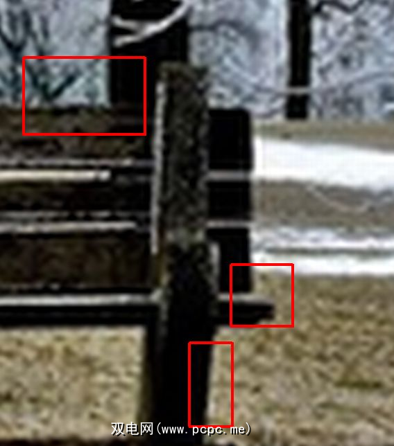 接下来,我们来看看公园的PNG图片,该图片具有强烈的黑白对比。这样的图像会对JPG压缩过程产生影响。从远处看不太明显,但放大时更明显。